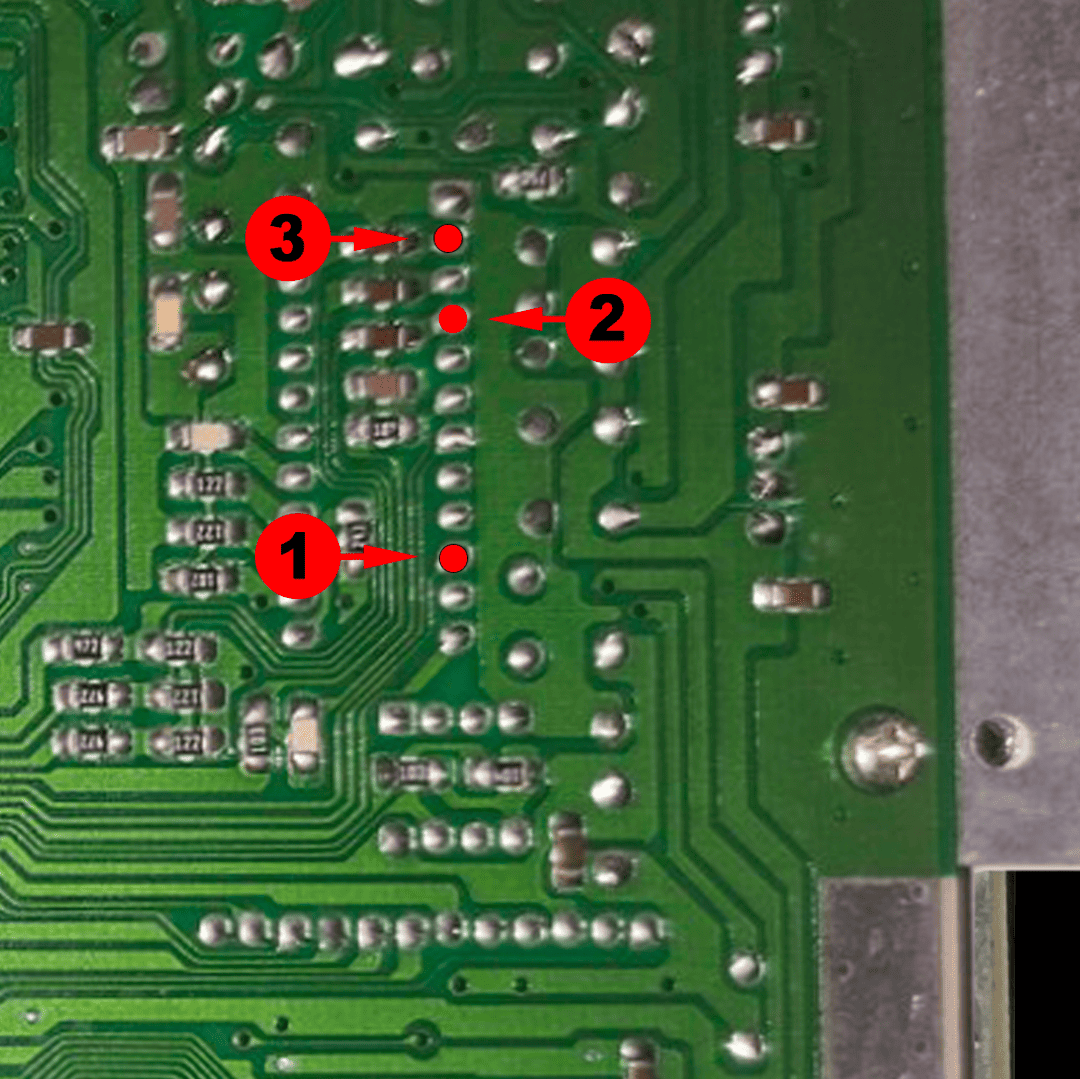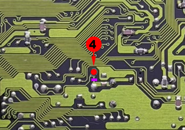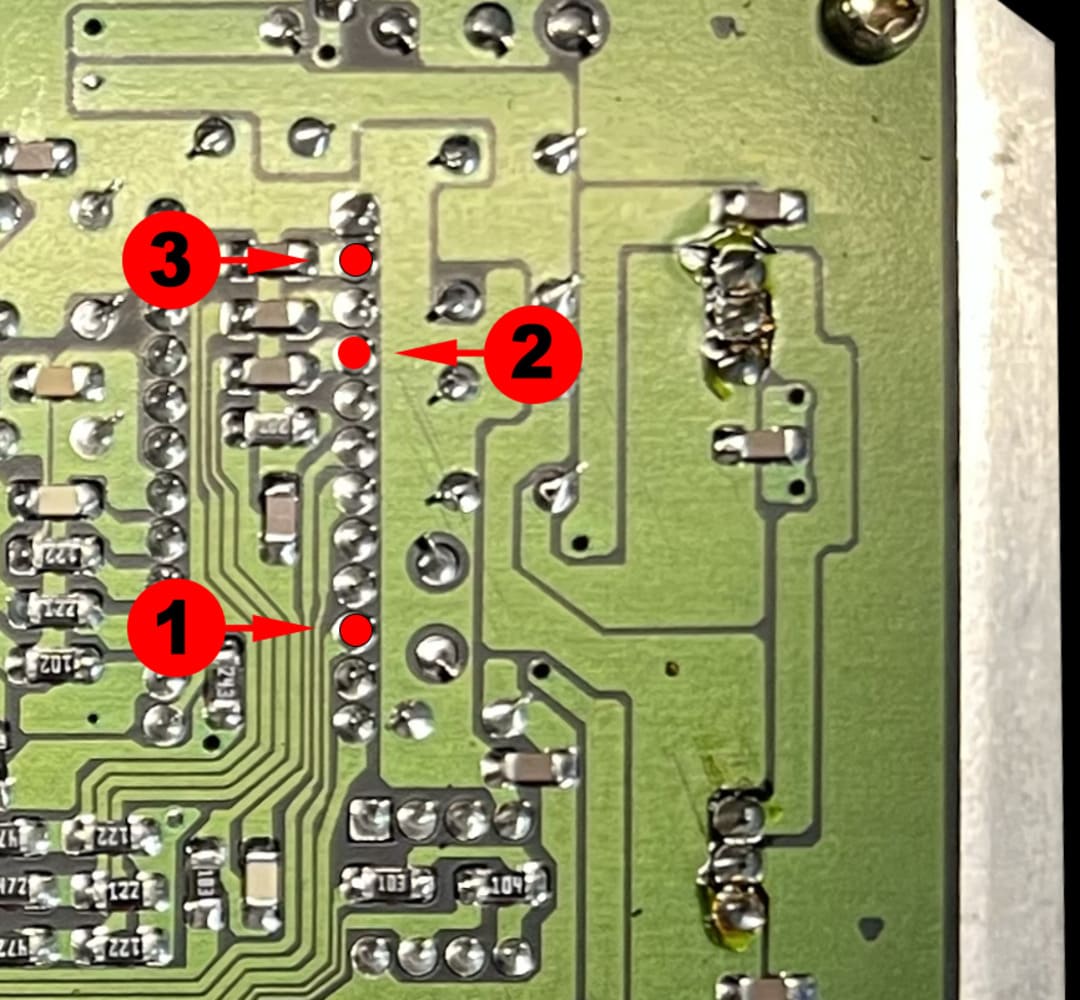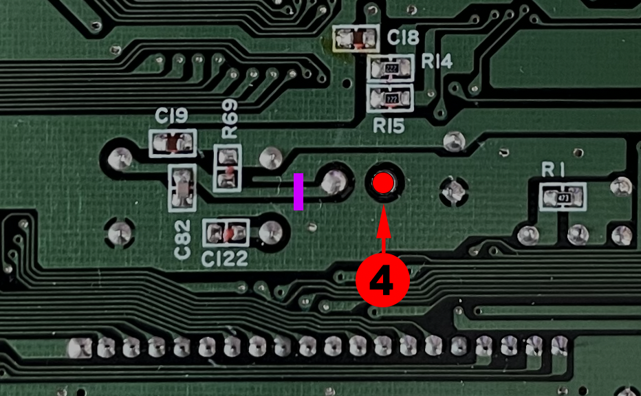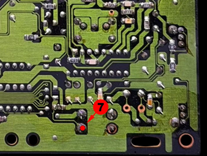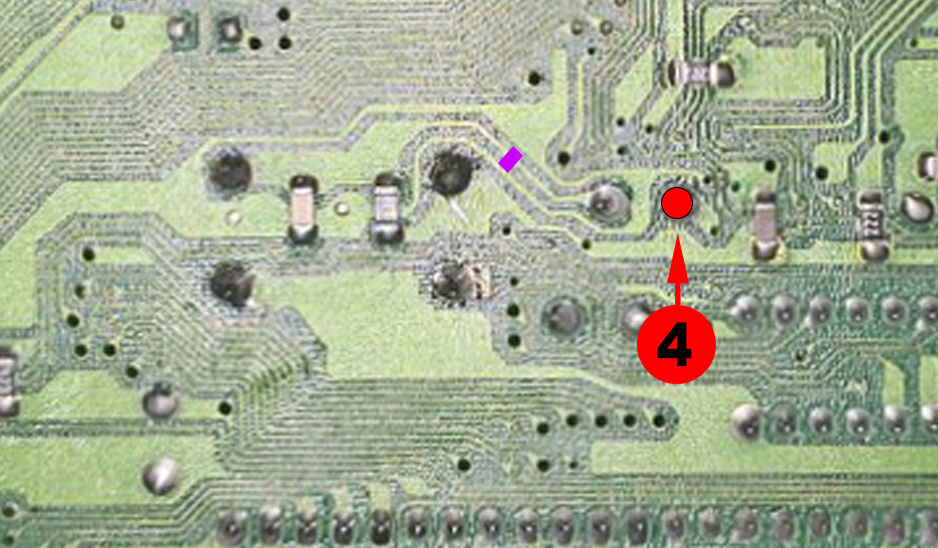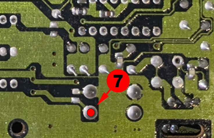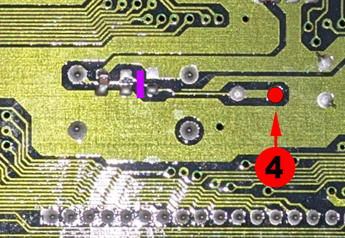 Ce point nécessite de gratter légèrement le vernis de protection afin d’exposer la piste cuivre.